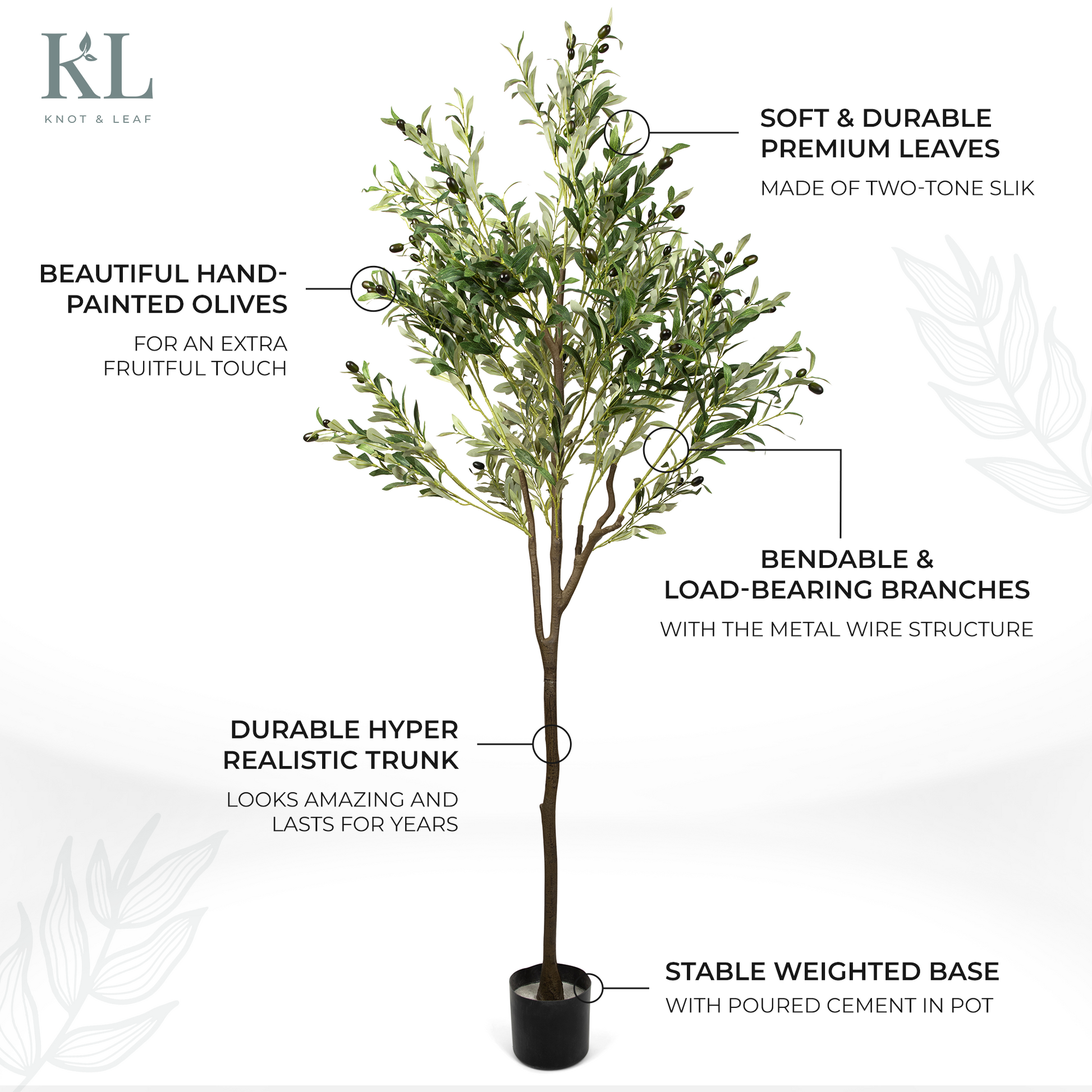 BRING NATURE INDOORS with Knot & Leaf's 180cm / 6ft Artificial Olive Tree. Featuring a lifelike trunk & stems, two-tone silk fabric leaves, and faux dark purple olive fruits.